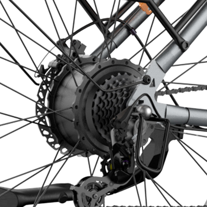 An advanced torque sensor is at the heart of the F1's intelligent riding system. Continuously monitoring the force you apply while pedaling, it instantaneously adjusts the motor's support, striking the perfect balance between your effort and the electric boost. The result is a ride that feels intuitive and seamless, adapting effortlessly to every pedal stroke.