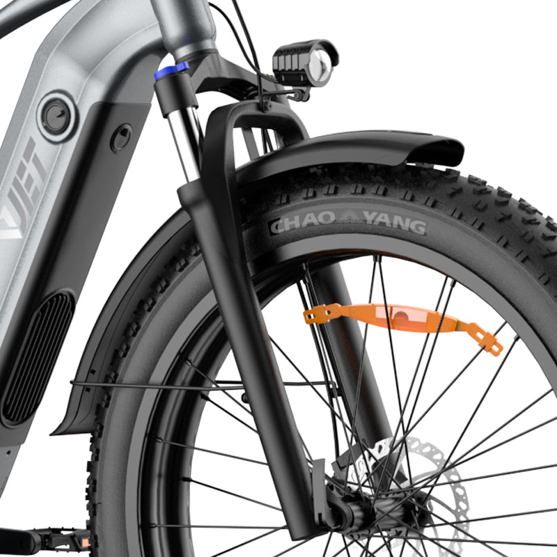When it comes to handling rough terrain, the F1's high-performance front suspension fork shines. Designed to soak up shocks and vibrations from uneven surfaces, potholes, and rocky paths, it cushions your ride, ensuring stability and comfort even on the most challenging routes. No more jarring bumps or uncomfortable jolts—just a smooth, controlled journey.