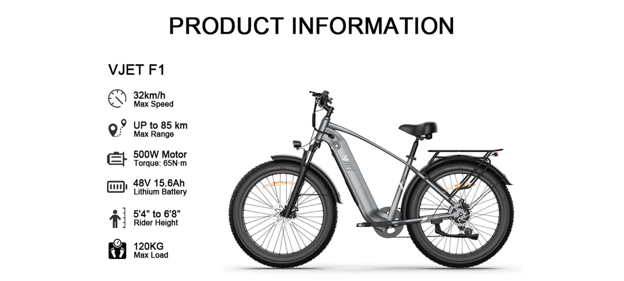 VJET F1 Electric Bike | 32km/h | 85km
